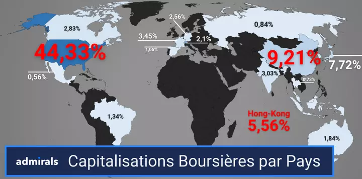 En matière de capitalisation boursière, les marchés américains représentent plus de 44% du total des capitalisations boursières mondiales !