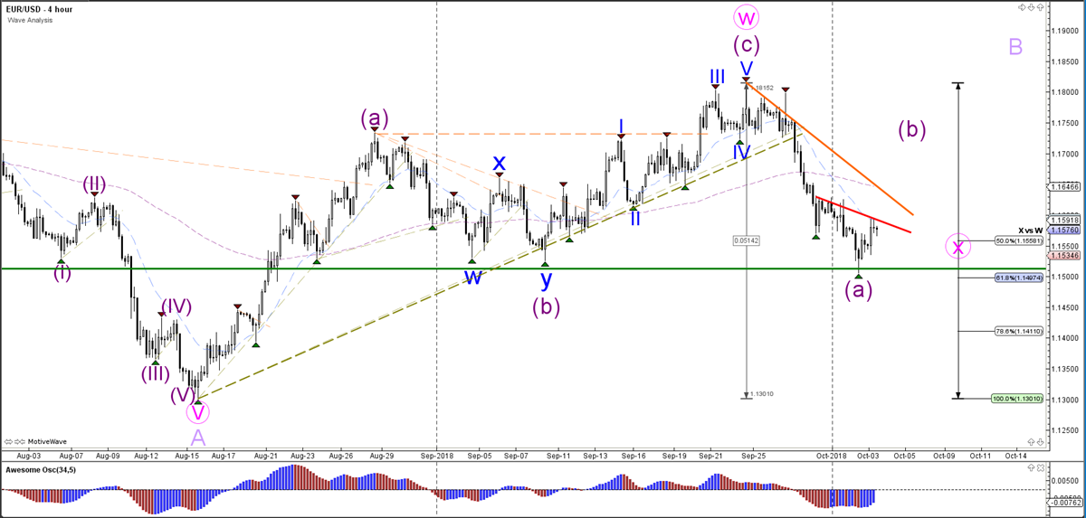 Análisis de ondas diario del 3 de octubre de 2018: Rebote alcista en el EURUSD en el soporte de 1.15