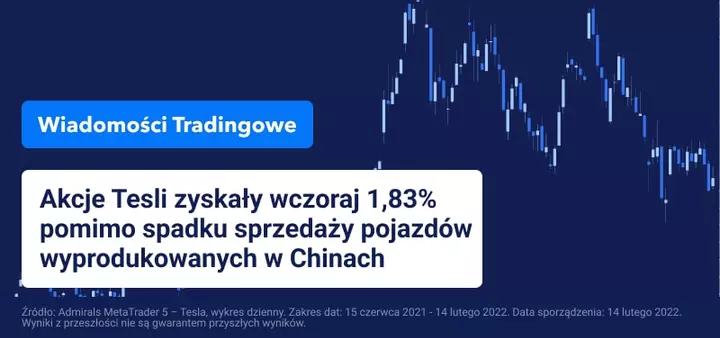Źródło: Admirals MetaTrader 5 – Tesla, wykres dzienny. Zakres dat: 15 czerwca 2021 - 14 lutego 2022. Data sporządzenia: 14 lutego 2022. Wyniki z przeszłości nie są gwarantem przyszłych wyników.