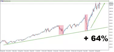 ✔️ Negociar o Índice Nasdaq em Buy e Sell, de modo a aproveitar o crescimento da economia dos EUA, mas também os períodos de correção.